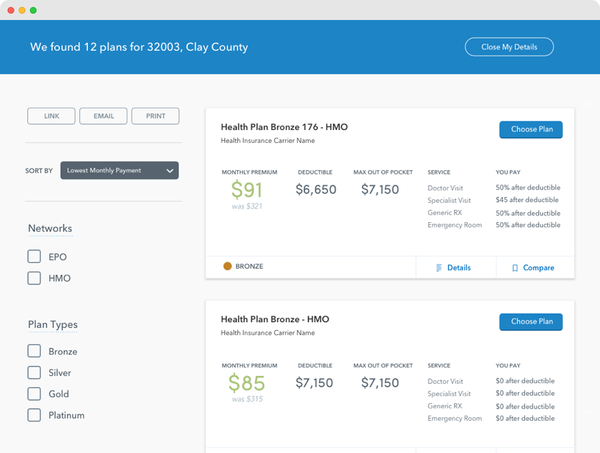 Quickly see what kind of savings you qualify for under the Affordable Care Act without ever having to sign up.